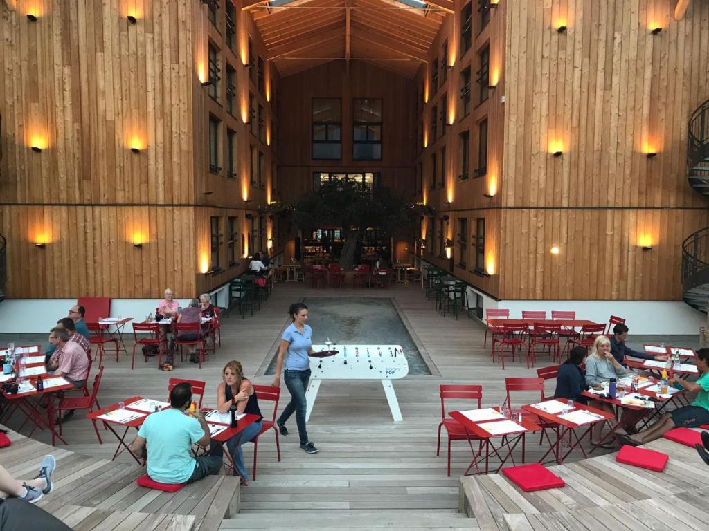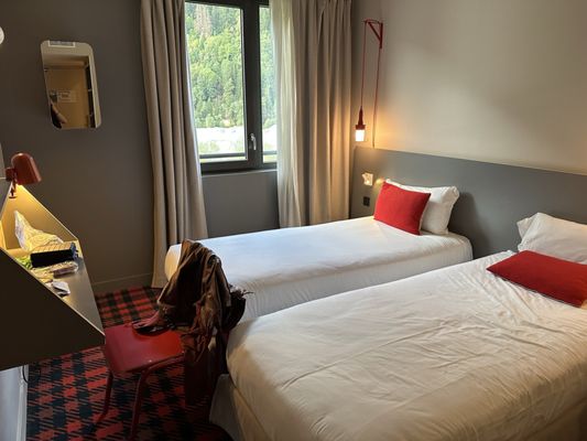 Hotel je zameraný na mladých outdoorových hostí. Izby sú malé, ale ponúkajú všetko, čo pocestný, ktorý aj tak trávi celý deň v horách, potrebuje. Súčasťou hotela je veľké lobby so snack barom, večerným barom, stolno-futbalovým či ping-pongovým stolom. Je známy krásnymi výhľadmi na samotný Mont Blanc a veľmi pohodovou uvoľnenou atmosférou.